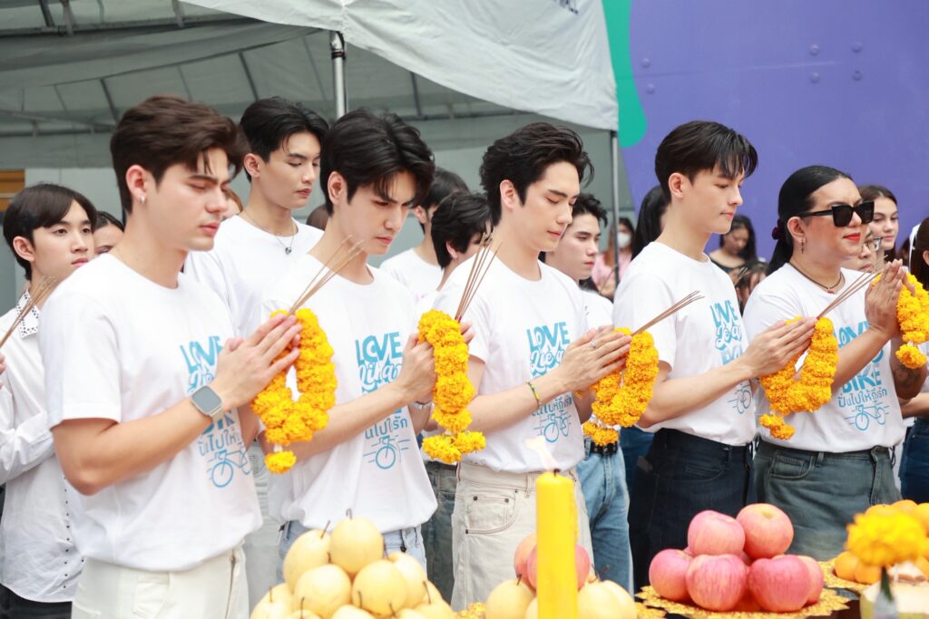 เตรียมใจให้พร้อม เพราะครั้งนี้ “ความรัก” กำลังจะปั่นมาหาคุณ! กับซีรีส์วายแนวโรแมนติก ดราม่า ฟีลกู๊ดเรื่องใหม่ “LOVE LIKE A BIKE ปั่นไปให้ถึงรัก” ผลงานล่าสุดจาก “บริษัท S CLASS ENTERTAINMENT” ร่วมกับ “บริษัท P.S. PERFORMANCE” ที่จัดพิธีบวงสรวงเอาฤกษ์เอาชัยก่อนเปิดกล้อง ณ ลานพระพิฆเนศวร หน้าศูนย์การค้ายูเนียนมอลล์ เรื่องนี้ถือเป็นการเปิดซิงซีรีส์วายครั้งแรกของพระเอกหนุ่ม “มาสุ จรรยางค์ดีกุล” ในบท “นับหนึ่ง” จิตแพทย์หนุ่มอบอุ่นละมุนขั้นสุด ละลายยิ่งกว่าเตาไมโครเวฟ! ประกบคู่กับ “ตี๋-ธนพล จารุจิตรานนท์” เจ้าพ่อซีรีส์วาย กับบท “สายลม” คนไข้หนุ่มที่กลัวการถูกสัมผัสจากผู้ชาย บอกเลยว่ายังไม่ทันเปิดกล้อง เคมีก็พุ่งแรงตั้งแต่งานบวงสรวง แฟนคลับถึงกับใจเต้นไม่เป็นจังหวะ