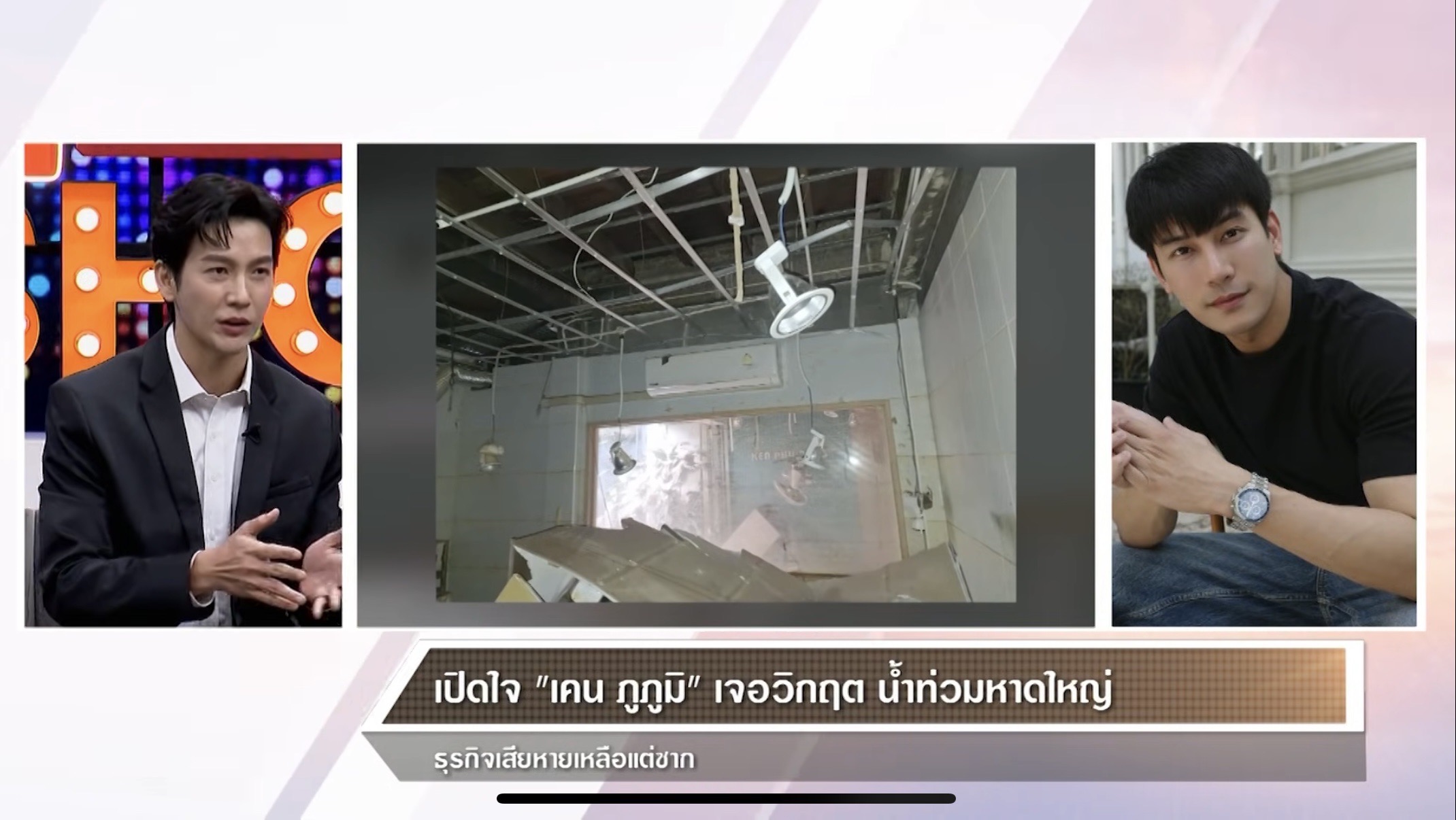 อนึ่งตอนต้นรายการ ก็ได้โฟนอิน “เคน ภูภูมิ” ถึงกรณีที่ร้าน เคนภูปัง ก็เจอน้ำท่วม จนทุกอย่างเสียหาย 100%