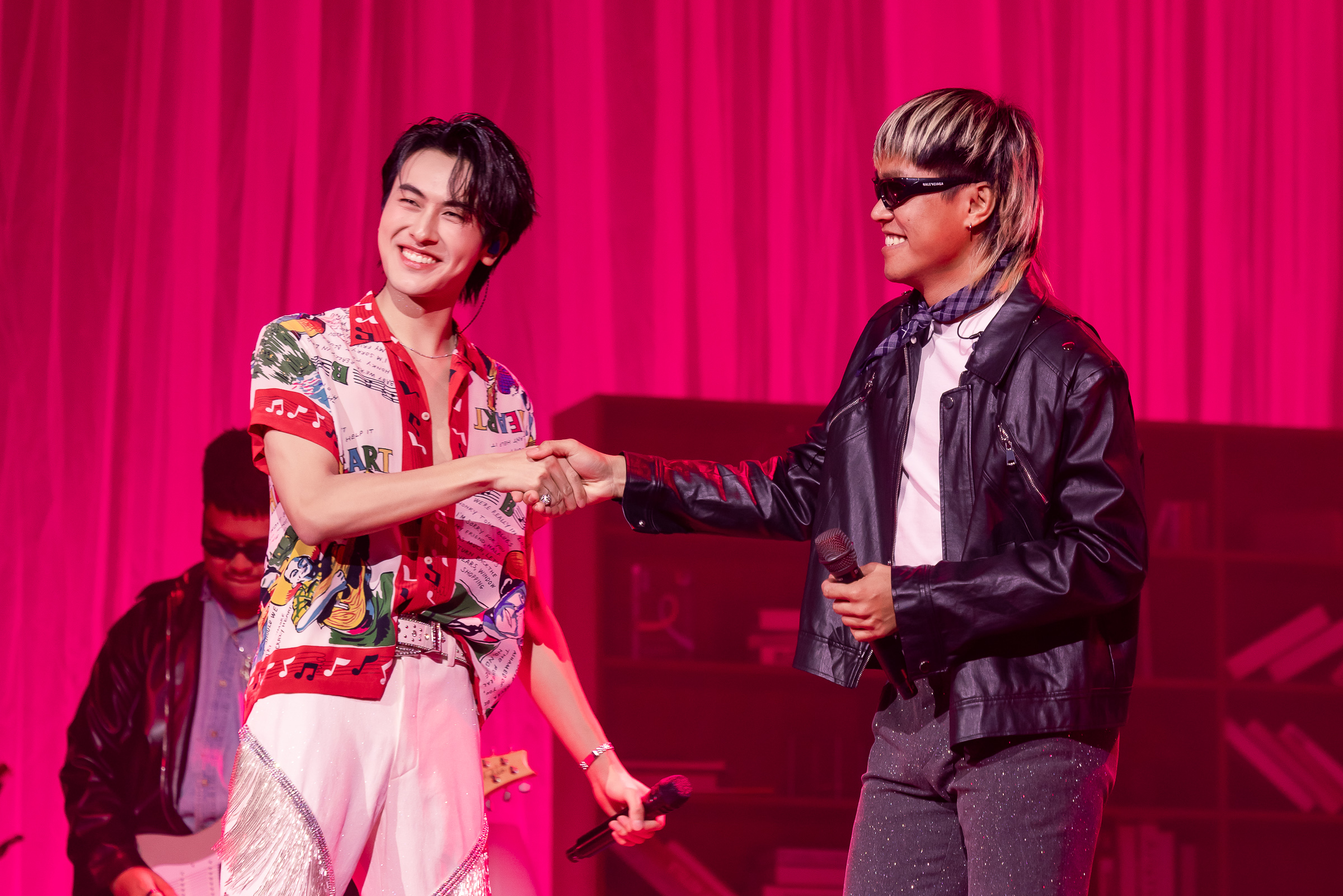 ความมันส์ยังต่อเนื่องไปกับแขกรับเชิญคนพิเศษ ‘Chokun PROXIE’ ที่ทำให้ยิ้มเขินจนลืมตัว เพราะเคมีความจิ้นของ #กรกุน ดาเมจได้มาก ขยันเสิร์ฟความทะเล้นแบบอันลิมิตในเพลง ‘โสดกะปริบกะปรอย’ ที่มีท่อนเซอร์ไพรส์ด้วยเพลง ‘Bad Shawty’ แถมด้วยโบนัสพิเศษให้กับแฟน ๆ เมื่อ ‘กร – โชกุน’ ลงมาเต้นด้านล่างเวที ที่มีสมาชิก ‘PROXIE’ อย่าง ‘คิม – อองรี – กัน – วิคเตอร์’ มาร่วมชมและเชียร์ ลุกขึ้นเต้นแบบอัตโนมัติเพื่อซัพพอร์ตเพื่อน กลายเป็นช็อตสุดน่ารักของงาน และปิดท้ายด้วยเพลง ‘ยิ่งดุยิ่งชอบ’ ที่ท่าเต้นทำเอาฮ็อบไม่ไหว หัวใจแฟน ๆ แทบหล่นวูบกับความขี้เล่นของ #กรกุน ก่อนจะส่งเวทีให้ ‘โชกุน’ ได้ปล่อยของผ่าน Solo Single ในเพลง ‘ชอบไหม ไหนลองบอก (Just Talk)’