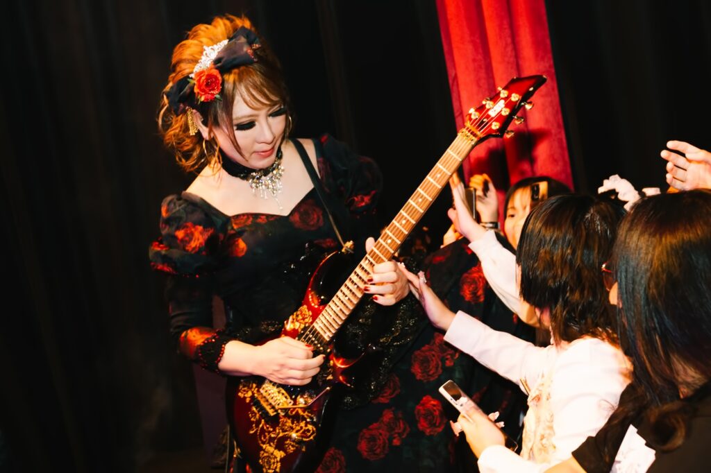 เวลา 1 ทุ่มตรงเป๊ะ! เสียงดนตรีดังระรัว ต้อนรับทุกคนเข้าสู่บรรยากาศความสนุกที่เรียกว่าเดือด! กันตั้งแต่วินาทีแรก “ฮิซากิ” และ “คายะ” ปรากฏตัวขึ้นมาบนเวทีด้วยคอสตูมชุดแนวโกธิก ที่ทั้งดูสวยงาม เท่ และลึกลับ เรียกว่าแค่เห็นก็ทำเอาใจเต้นรัว พร้อมกับเปิดเวทีด้วยเพลง Carmila และ Vampire Requiem ก่อนที่ทั้ง 2 คน จะทักทายแฟนๆ ด้วยภาษาไทยว่า “สวัสดีค่า” และไปกันต่อแบบไม่พักให้หายใจ กับเพลง GURENGE จากนั้นคายะ ก็มอบเวทีให้กับฮิซากิ ได้โซโล่กีตาร์แบบจัดเต็ม กับ 2 เพลง Stella Maris และ Race Wish ที่มาแค่ดนตรีแต่ความเดือดระดับ 100!