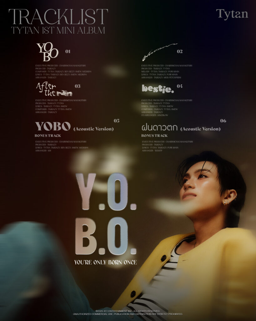 เท่านั้นยังไม่พอ “กึ้ง-เฉลิมชัย” สั่งลุยปล่อย 1st Mini Album Y.O.B.O. [YOU’RE ONLY BORN ONCE] ที่เป็น Physical ออกมาถึง 2 Version ได้แก่ BLISS VER. และ BLUSH VER. ให้แฟนๆ ได้เก็บสะสม พร้อมเตรียมจัดแฟนไซน์ให้หนุ่มไทแทนหลังจากที่เหล่าธันเดอร์ (ชื่อแฟนคลับ) เรียกร้องกันมานาน โดย TYTAN [Y.O.B.O.] 1ST FANSIGN EVENT จัดขึ้นเพื่อตอบแทนความรักของเหล่าธันเดอร์ที่มีให้ไทแทนเสมอและมากขึ้นเรื่อยๆ สำหรับทุกการสั่งซื้อ 1 อัลบั้ม รับ 1 สิทธิ์ ในการเข้าร่วมงาน  TYTAN [Y.O.B.O.] 1ST FANSIGN EVENT ในวันที่ 29 มี.ค. 2568 ณ SF World Cinema, centralwOrld