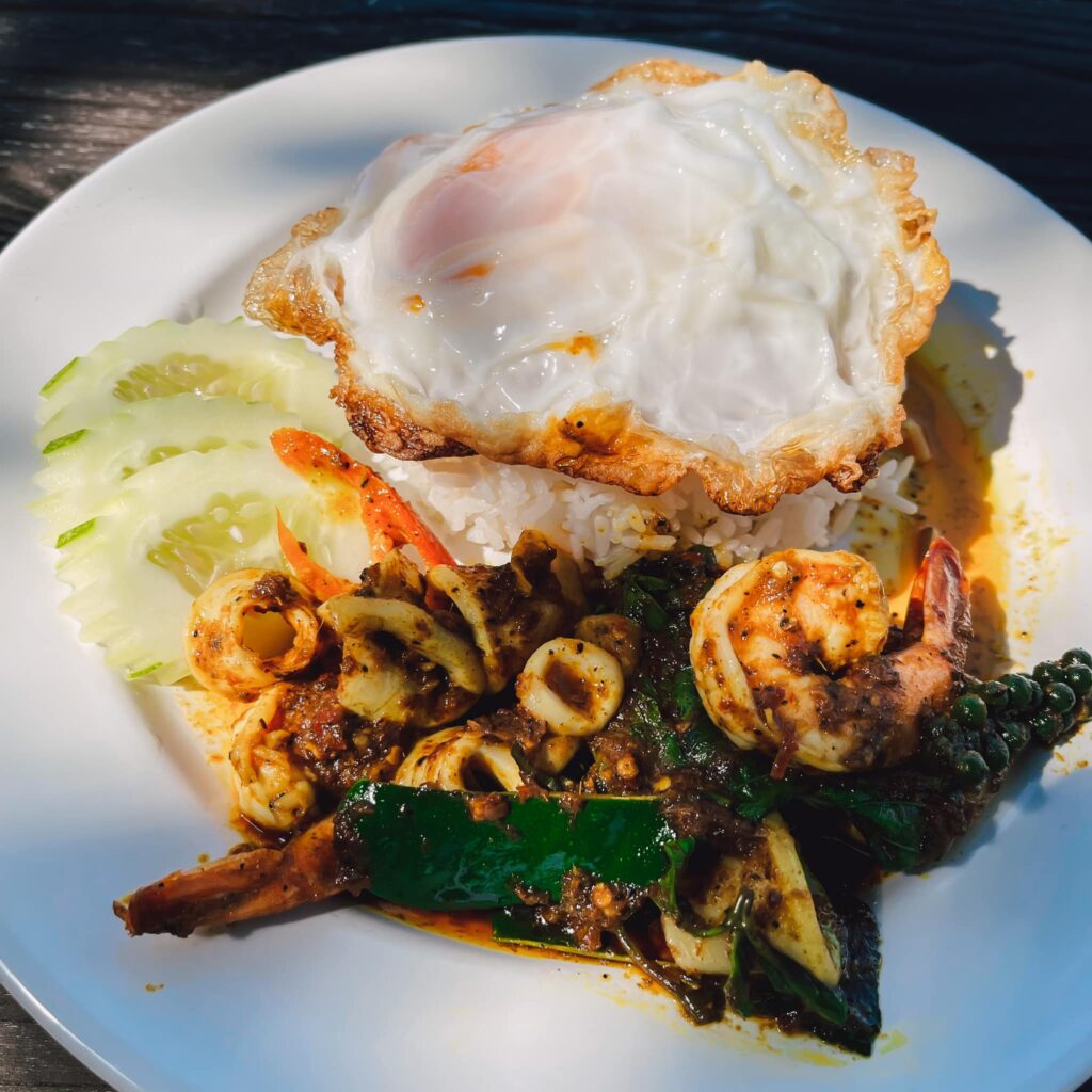 THE WIDE VIEW CAFE คาเฟ่ลับแนวธรรมชาติ อยู่ใกล้ทุ่งนา มีวิวภูเขาสวยงาม ให้ความรู้สึกผ่อนคลายมากๆ บรรยากาศดีสุดๆ ไปตอนเย็นๆ น่าจะดีเลย เอินไปช่วงบ่ายๆ แดดดีเชียว จุดถ่ายรูปมีเยอะ อาหารอร่อยมาก รสชาติบ้านๆ เลย – ชามะนาว 60.– เครื่องแกงซีฟู๊ด+ไข่ดาว 120.-
