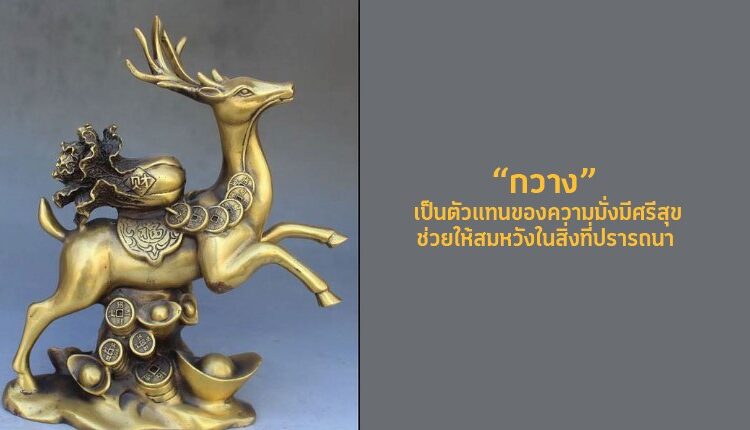 “กวาง” เป็นตัวแทนของความมั่งมีศรีสุข ช่วยให้สมหวังในสิ่งที่ปรารถนา ด้านฮวงจุ้ยมักใช้กวางที่เป็นรูปปั้น หรือ เป็นภาพถ่ายกวางภาพมงคล จัดวางเสริมดวงการเงิน ไม่หันออกไปหน้าบ้านหรือหน้าร้านให้หันเข้า
