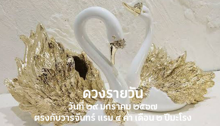 “ดวงวันนี้” ดวงประจำวันจันทร์ที่ 29 มกราคม พ.ศ.2567 “หงส์” เป็นตัวแทนแห่งความอิสระและการเริ่มต้นชีวิตใหม่ เป็นการนำพาเอาสิ่งใหม่ ๆ มาสู่ผู้ครอบครอง