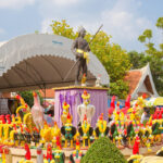 .“วัดบัวขวัญ” นนทบุรี พบความอลังการถ้ำพระอรหันตเถรานาคาธิบดีที่มีพระพุทธมหามุนีสีทององค์ใหญ่อยู่กลางถ้ำ ด้านหลังมีองค์ปู่ศรีสุทโธและย่าศรีปทุมมา ให้มากราบไหว้ขอพร ส่วนอีกฝั่งจำลองเป็นเขามอ เป็นที่ประดิษฐานของเหล่าพญานาคราช พระพุทธรูปพระประธาน รวมถึงองค์พระราหูด้วย