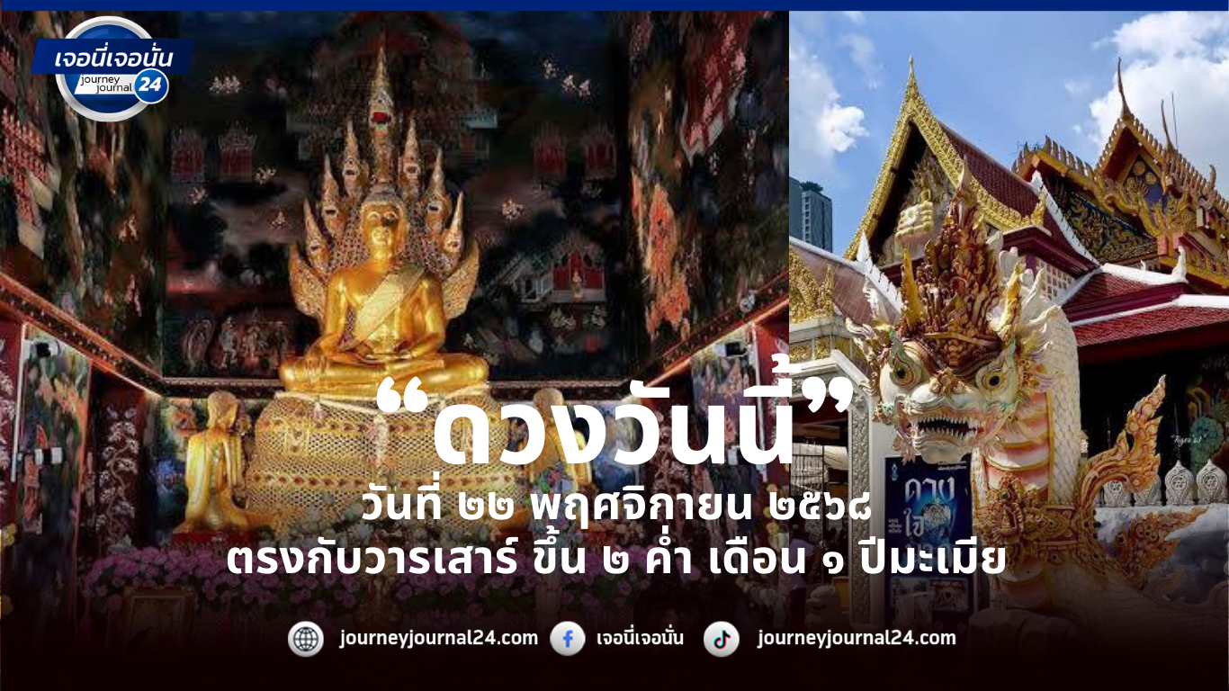 “ดวงวันนี้” วันที่ ๒๒ พฤศจิกายน ๒๕๖๘ ตรงกับวารเสาร์ ขึ้น ๒ ค่ำ เดือน ๑ ปีมะเมีย