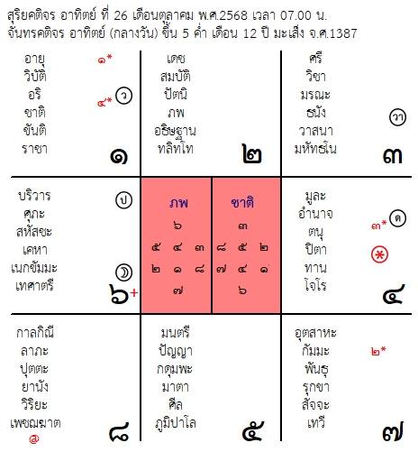 “ดวงวันนี้” วันที่ ๒๖ ตุลาคม ๒๕๖๘ ตรงกับวารอาทิตย์ ขึ้น ๕ ค่ำ เดือน ๑๒ ปีมะเส็ง