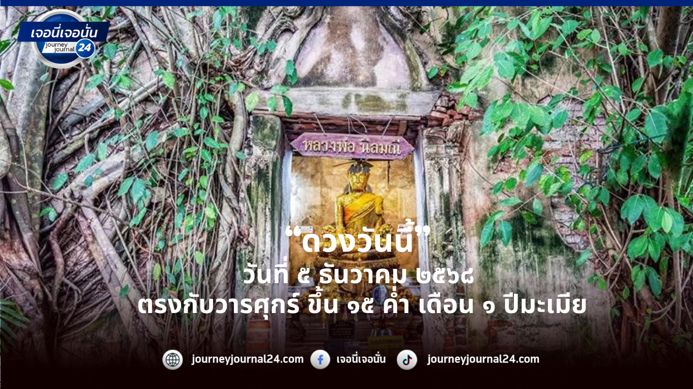 ”ดวงวันนี้“ วันที่ ๕ ธันวาคม ๒๕๖๘ ตรงกับวารศุกร์ ขึ้น ๑๕ ค่ำ เดือน ๑ ปีมะเมีย