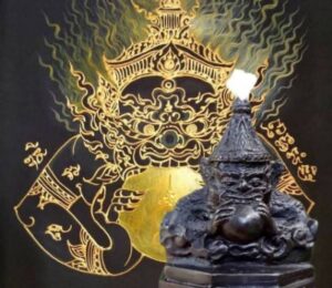 กินนุ สันตะระมาโน วะราหุ สุริยัง ปะมุญจะสิสังวิคคะรูโป อาคัมมะกินนุ ภีโต วะ ติฏฐะสีติสัตตะธา เม ผะเล มุทธา ชีวันโต นะ สุขัง ละเภพุทธะคาถาภิคีโตมหิ โน เจ มุญเจยยะ สุริยันติกินนุ สันตะระมาโน วะราหุ จันทัง ปะมุญจะสิสังวิคคะรูโป อาคัมมะ กินนุ ภีโต วะ ติฏฐะสีติสัตตะธา เม ผะเล มุทธา ชีวันโต นะ สุขัง ละเภพุทธะคาถาภิคีโตมหิ โน เจ มุญเจยยะ จันทิมันติ
