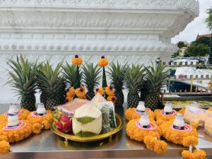 ไม่ว่าลูกจะทำงานหรือลงทุนสิ่งใด ขอให้ราบรื่น เติบโต และสำเร็จเป็นกำไรที่งอกงาม โปรดช่วยปัดเป่าอุปสรรคและประทานความสิริมงคลในทุกย่างก้าวของลูกนับจากนี้ด้วยเทอญ”