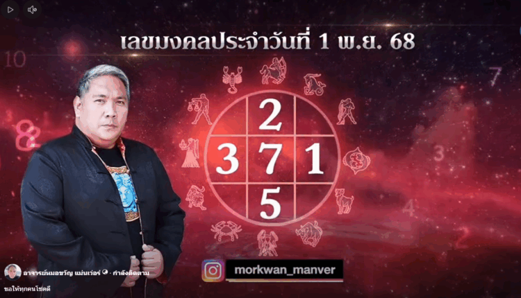 “หมอขวัญ แม่นเวอร์” ให้เลขเด็ด งวดวันที่ 1 พศจิกายน 2568