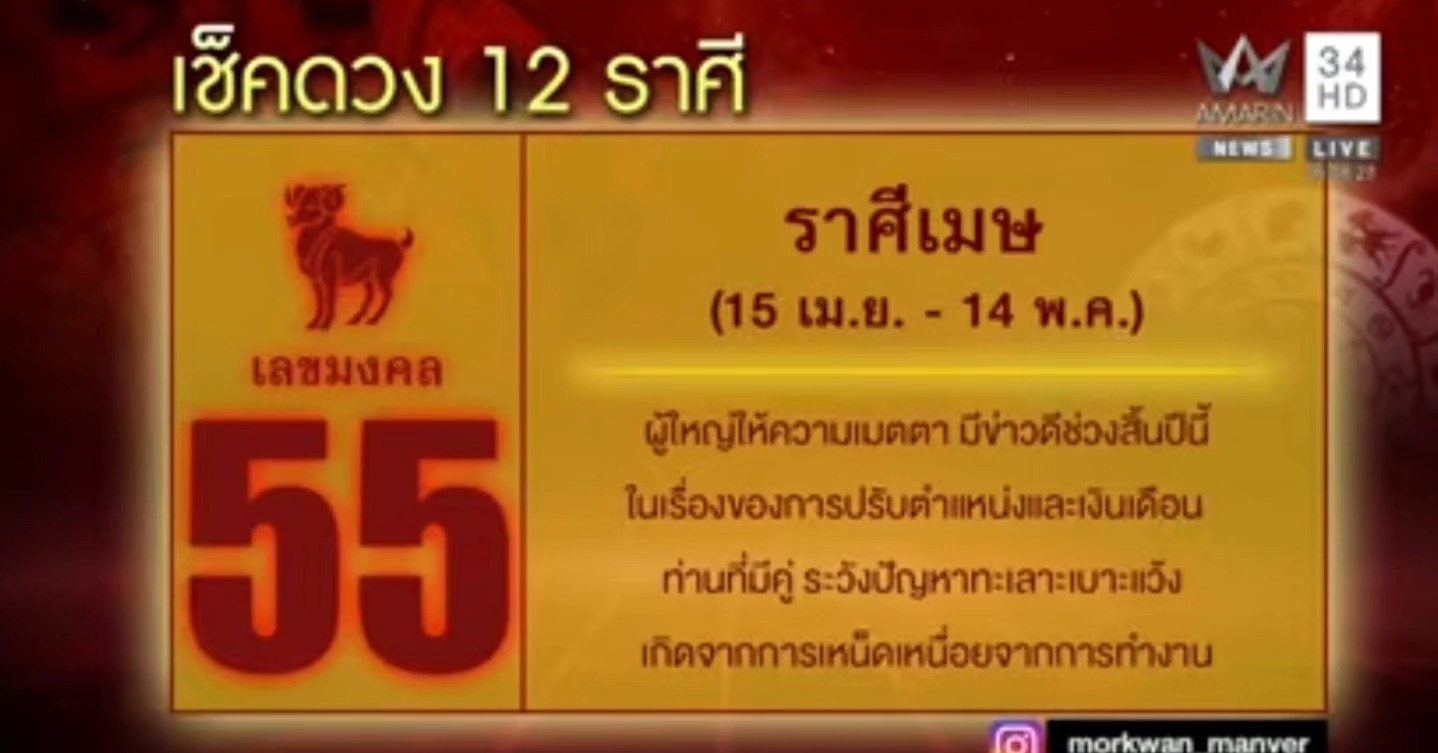 - ราศีเมย. 15 เมย.- 14 พค. 2568 เลขมงคล 55