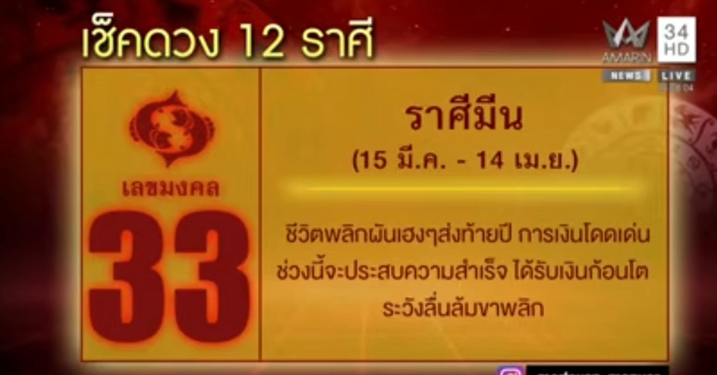 - ราศีมีน 15 มีค.- 14 เมย.. 2568 เลขมงคล 33