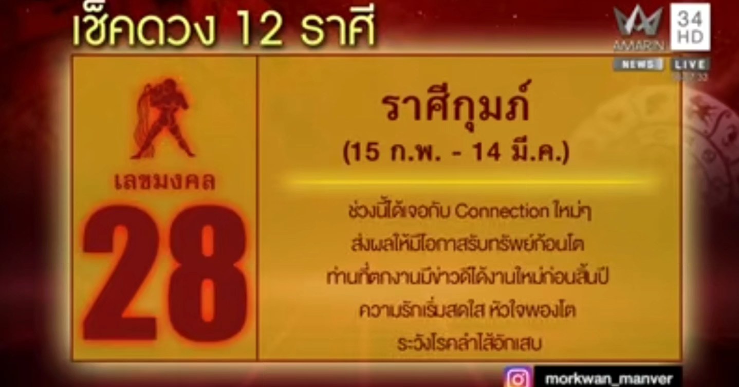 ราศีกุมภ์ 15 กพ- 14 มีค. 2568 เลขมงคล 28