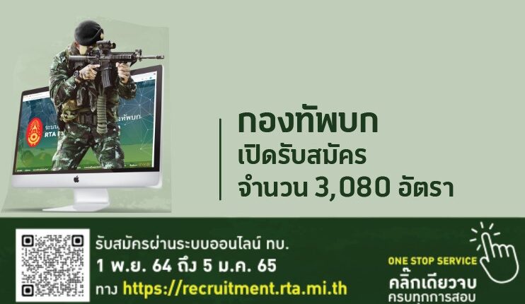 กองทัพบก เปิดรับสมัครแล้ว จำนวน 3,080 อัตรากองทัพบกเปิดรับสมัครเข้ารับราชการนายทหารชั้นประทวนประจำปี 2565 จำนวน 3,080 อัตรา