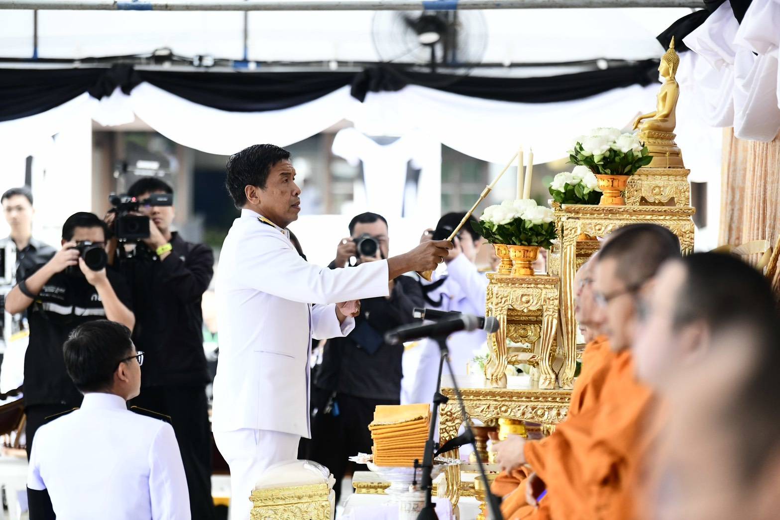 ภายหลังเสร็จสิ้นพิธีสงฆ์ นายชัชชาติ สิทธิพันธุ์ ผู้ว่าราชการกรุงเทพมหานคร พร้อมคณะผู้บริหาร ข้าราชการ และบุคลากรกรุงเทพมหานคร และผู้ร่วมพิธี ร่วมตักบาตรพระสงฆ์ จำนวน 93 รูป เพื่อถวายเป็นพระราชกุศลโดยพร้อมเพรียงกัน บรรยากาศเป็นไปด้วยความสงบ สำนึกในพระมหากรุณาธิคุณ และความจงรักภักดีอย่างล้นพ้น
