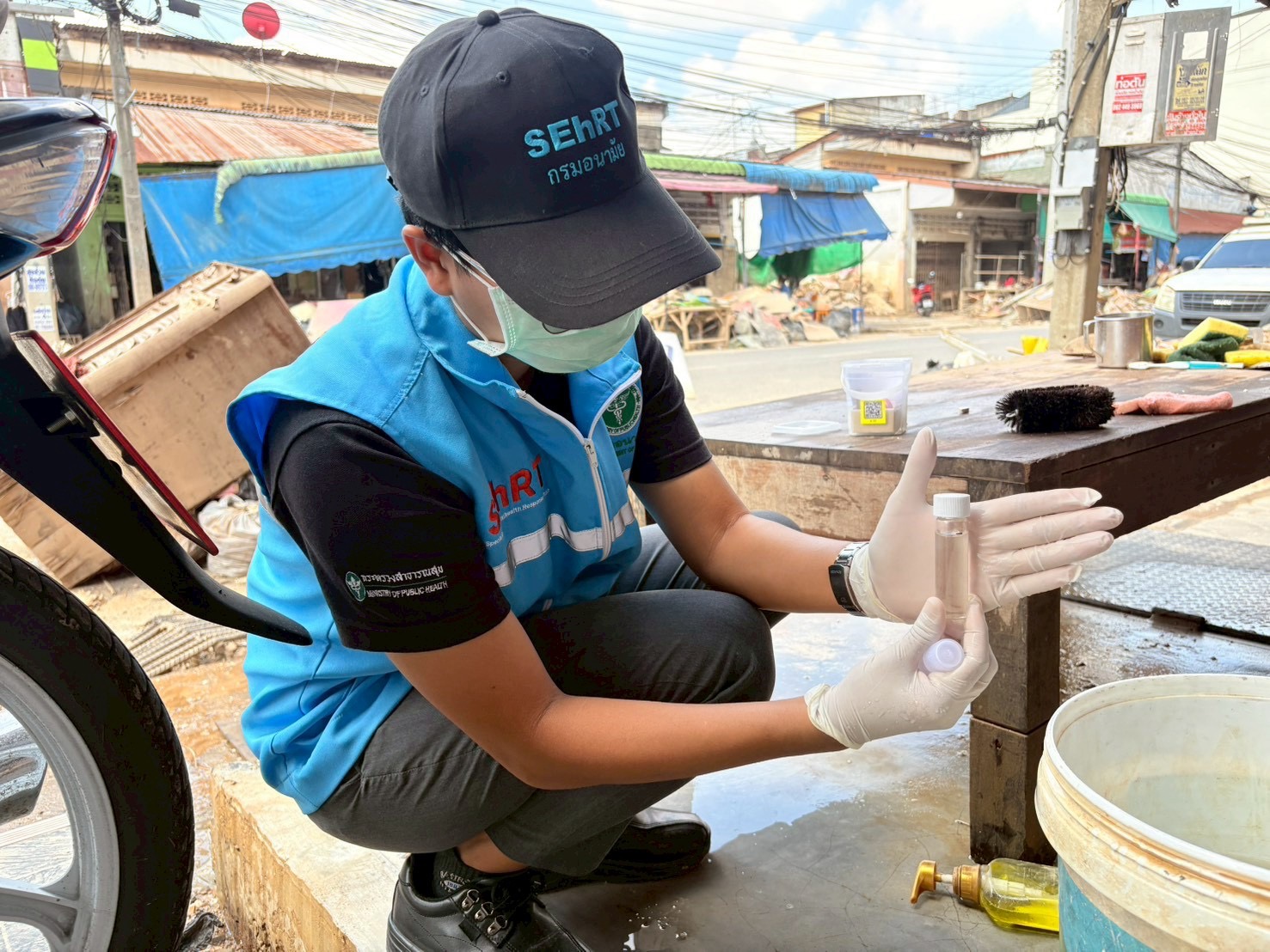 กรมอนามัย ลุยเท้า เฝ้าระวังสุขภาพ ตรวจคลอรีน โรยปูนขาว ป้องกันกลิ่น-เชื้อโรค