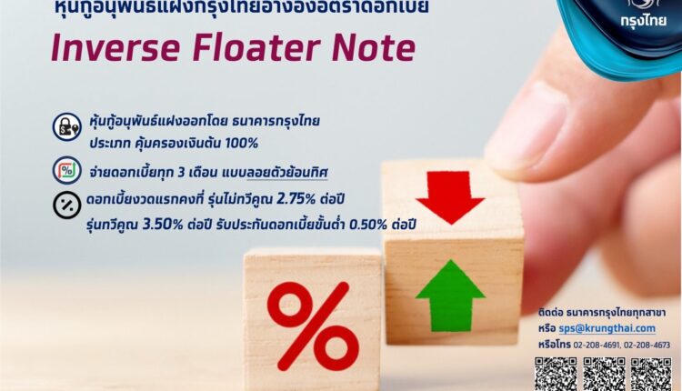 “กรุงไทย”จัดใหญ่ ขายเพิ่มหุ้นกู้อนุพันธ์แฝง “Krungthai Inverse Floater” การันตีเงินต้น100% ดีเดย์ 8-12 ก.ค.นี้