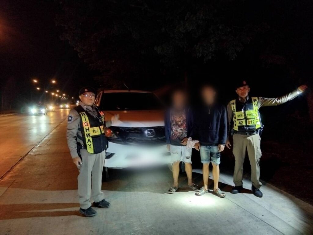 ต่อมาเจ้าหน้าที่ตำรวจทางหลวงได้สังเกตุเห็นรถรถยนต์กระบะ ยี่ห้อ มาสด้า สีขาว จอดอยู่บริเวณไหล่ทางก่อนถึงจุดสกัด มีในลักษณะมีพิรุธน่าสงสัย จึงได้นำกำลังเข้าไปทำตรวจสอบ จากการตรวจสอบพบ นายธีรภัทร เป็นผู้ขับขี่รถ และนายจิรโชติ โดยสารอยู่ที่นั่งข้างคนขับ จากนั้นได้ทำการตรวจค้นรถยนต์ดังกล่าว พบอุปกรณ์การเสพยาเสพติด และยาเสพติดให้โทษประเภท 1 (ยาบ้า) บรรจุอยู่ในถุงพลาสติกใสแบบซิปล็อค จำนวน 1 ถุง (ตรวจนับได้จำนวน 53 เม็ด) ซุกซ่อนภายในกระเป๋าสะพายสีดำของนายจิรโชติฯ สอบถาม ทั้งสองรับว่าได้มีการเสพยาบ้ามาจริง และจากการตรวจสอบข้อมูลของนายธีรภัทรฯ พบว่าเป็นผู้ต้องหาตามหมายจับที่เพิ่งก่อเหตุ