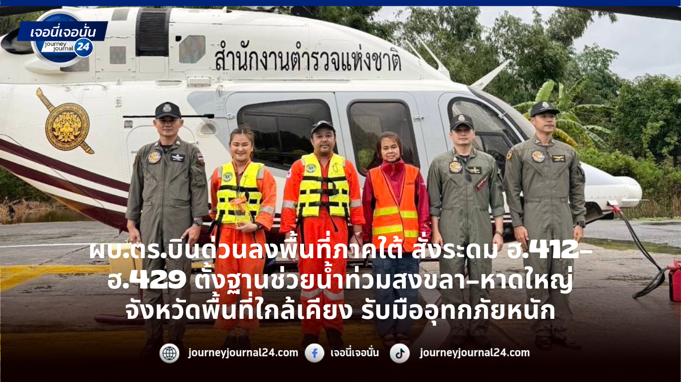 ผบ.ตร.บินด่วนลงพื้นที่ภาคใต้ สั่งระดม ฮ.412–ฮ.429 ตั้งฐานช่วยน้ำท่วมสงขลา–หาดใหญ่ จังหวัดพื้นที่ใกล้เคียง รับมืออุทกภัยหนัก
