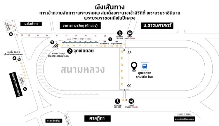 ผังเส้นทางการเข้าถวายสักการะพระบรมศพสมเด็จพระนางเจ้าสิริกิติ์ พระบรมราชินีนาถ พระบรมราชชนนีพันปีหลวง.