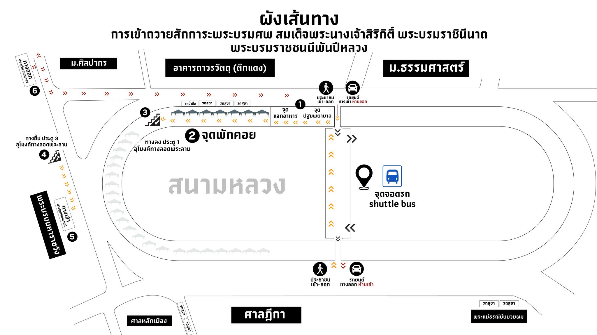 ผังเส้นทางการเข้าถวายสักการะพระบรมศพสมเด็จพระนางเจ้าสิริกิติ์ พระบรมราชินีนาถ พระบรมราชชนนีพันปีหลวง.
