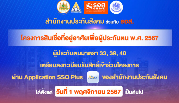 รีบเลย! 1 พ.ย.ลงทะเบียน ใช้สิทธิประกันสังคม กู้ซื้อบ้าน ธอส.ดอก 5 ปี 1.59%