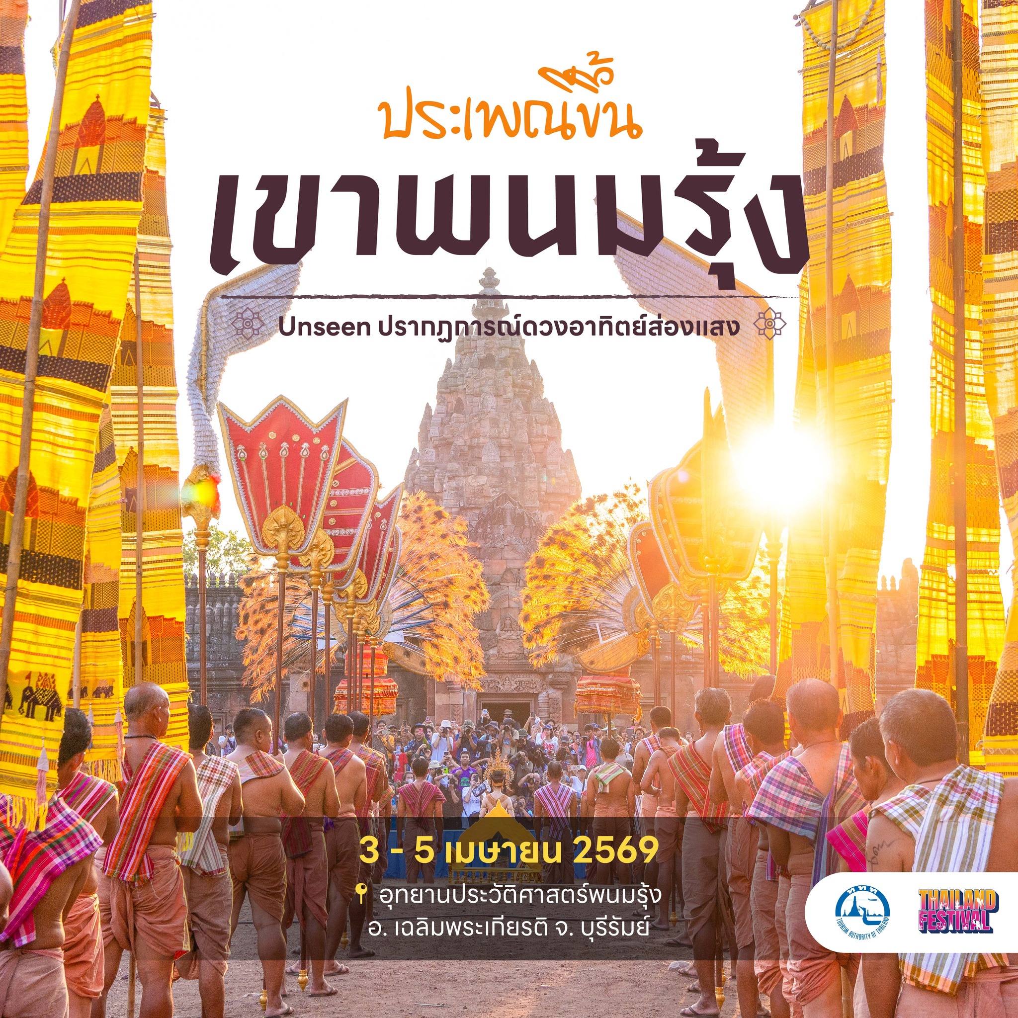 ชวนเที่ยวงาน “ประเพณีขึ้นเขาพนมรุ้ง ประจำปี 2569 ชมปรากฏการณ์ความมหัศจรรย์ของแสงอาทิตย์ที่สาดส่องลอด 15 ช่องประตู ณ อุทยานประวัติศาสตร์พนมรุ้ง อำเภอเฉลิมพระเกียรติ จังหวัดบุรีรัมย์