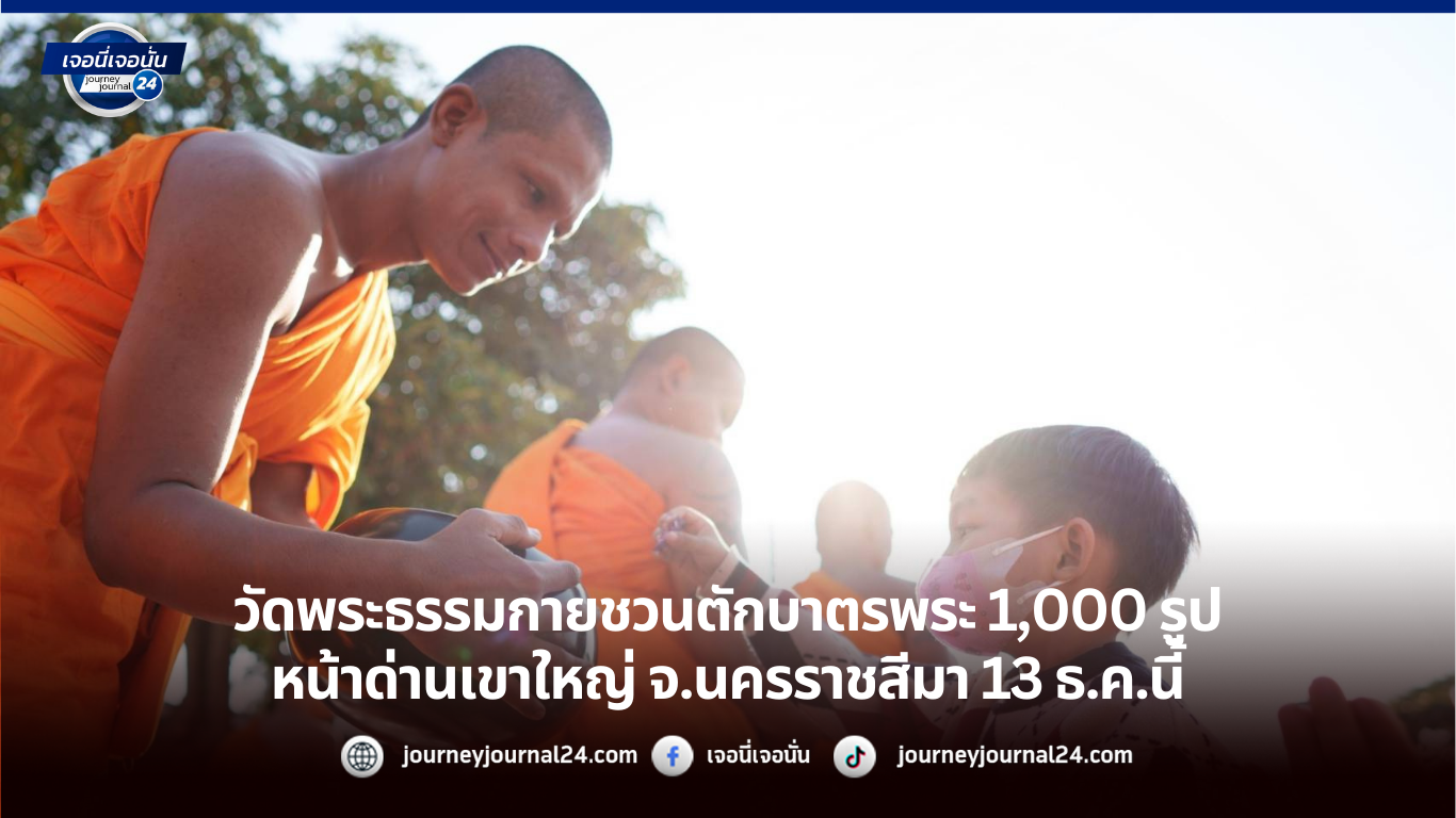 ขอเชิญชวนพุทธศาสนิกชนทุกท่านร่วมพิธีตักบาตรพระ 1,000 รูป ถวายเป็นพุทธบูชา ในวันเสาร์ที่ 13 ธันวาคม 2568 ณ หน้าด่านอุทยานแห่งชาติเขาใหญ่ จังหวัดนครราชสีมา เวลา 06.00–08.00 น. สำหรับผู้มีจิตศรัทธาสามารถร่วมเป็นเจ้าภาพสนับสนุนได้ที่ บัญชีกสิกรไทย ชื่อ “โครงการตักบาตรพระ เขาใหญ่” เลขที่บัญชี 218-1-63921-3 หรือสอบถามรายละเอียดเพิ่มเติม โทร. 06-1786-1616, 09-9664-4424, 06-2880-8991